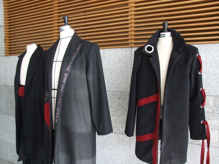 양쪽이 다른 눈동자를 의미하는 ‘오드아이’ 작품은 변화가 많지 않은 남성 정장에 변화를 주어 블랙과 레드로 강렬함을 표현하고 남성복 소재로 잘 사용되지 않는 lace를 믹스하여 트렌디한 남성복을 제안하였다.