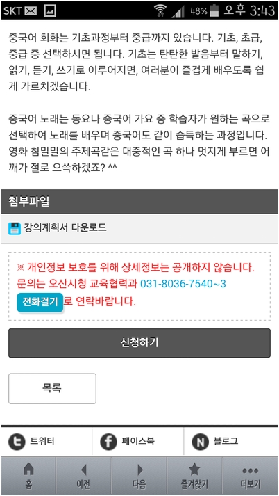주의할 점은 사전에 오산시 평생학습관 홈페이지에서 회원가입을 해야한다는 것입니다. 회원가입은 컴퓨터를 통해서만 되기 때문입니다.