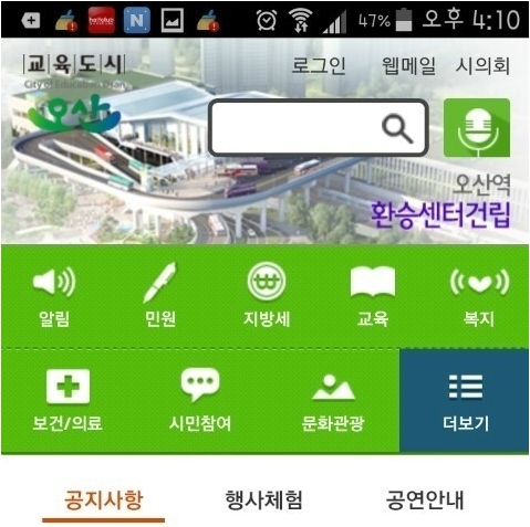 내 폰속의 오산, 바로 "스마트 오산"앱입니다. 오산시 홈페이지의 정보와 공지사항 등을 스마트 오산앱을 통해서도 확인할 수 있고 오산시의 각종 교통, 교육 정보도 얻을 수 있는 편리한 앱인데요. 이 앱에서도 런앤런 강좌 신청을 할 수 있다는것도 알고 계신가요?