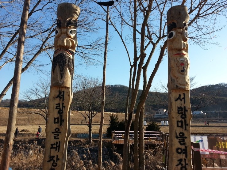 집으로 향하는 길에 '서랑마을대장군','서랑마을여장군'이라는 장승과 익살스러운 모습의 작은 장승들이 눈에 띄네요. 서랑동의 평화와 행운을 기하는 장승의 모습입니다. 요즘은 여간 장승을 보기 어려워 아이들에게 전래동화 책으로만 보여주었는데 전원적인 마을 이곳 서랑동에 오니 장승을 볼 수 있네요.