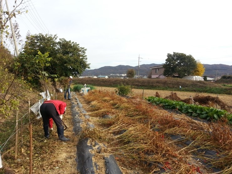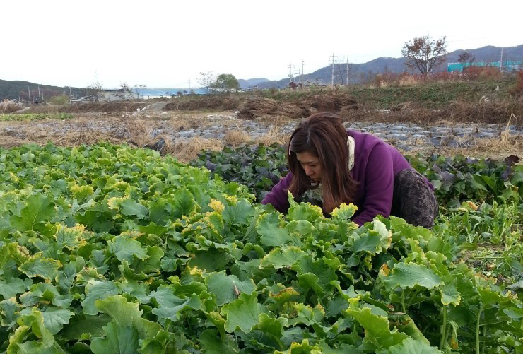 한달전만해도 들녘이 황금벌판이였던 논이 이제는 황토의 바닥을 드러내고 겨울을 준비하고 있었다. 그 사이사이로 보이는 밭에는 사람의 손길을 기다리는 속이 꽉찬 풍성한 배추와 알타리 무가 싱그럽다.