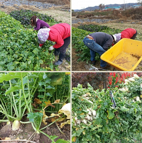 곳곳에서 무우를 수확하는 일손들이 바쁘게 움직이는 모습이 보인다. 그럼 우리도 알타리 무 부터 뽑아볼까~