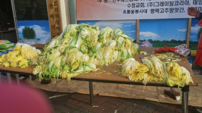 네.. 바로 김장이죠. 잘 담근 김장김치 하나면 겨우내 반찬걱정 끝. 오늘은 오산지체장애인을 위한 사랑의 김장 담그기가 있었습니다.