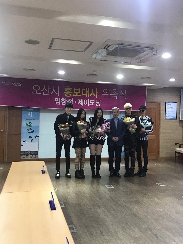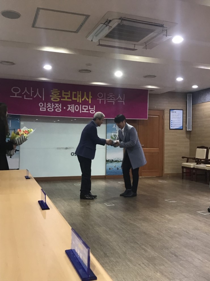 ▲ 위촉패를 받고 기념사진 촬영을 하고 있는 홍보대사 임창정 다음으로 제이모닝에게 위촉하는 모습입니다. 실제로 처음 봤는데 젊은 분들의 에너지가 느껴진다고 할까요? 젊은도시 오산시와 잘 어울리는 분들이라는 생각이 들었습니다.