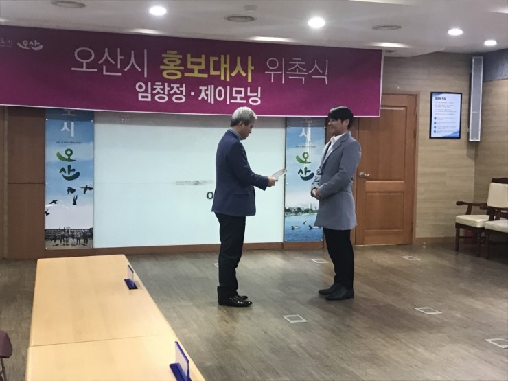 작년에 임명된 이장희씨를 비롯해 새로 임명된 임창정, 제이모닝 분들도 더 많은 분들에게 오산시를 알릴 수 있도록 노력해 주실거라 믿습니다. 앞으로 노래면 노래, 입담이면 입담 어느 것 하나 빼놓을 것 없이 다방면에서 마음껏 재능을 펼쳐주시길 바라요!
