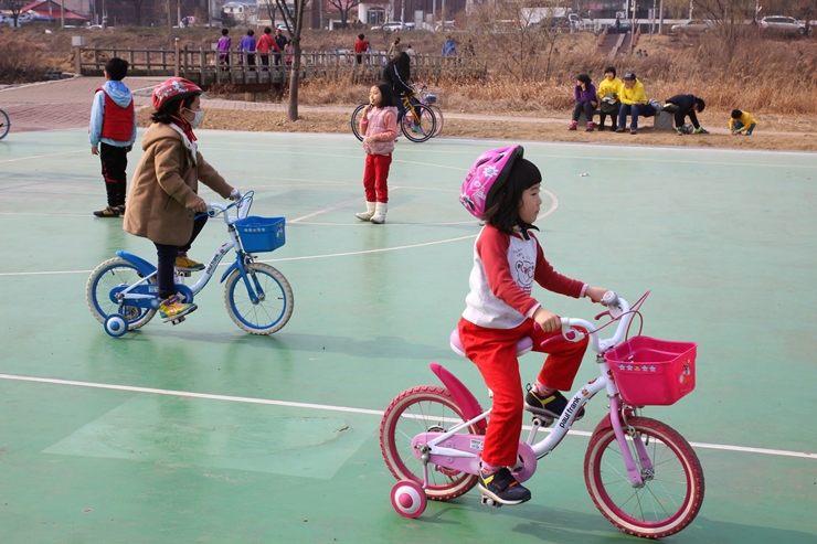 넓은 공터에서 열심히 자전거를 배우는 아이들도 보이네요.