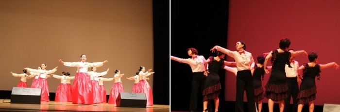 [함께하기에 가능한아름다운 퍼포먼스] 연령 불문, 성별 불문의 자치센터 수강생들은 밸리, 고전무용, 방송댄스, 경기민요, 합창, 스포츠댄스, 단요가등 그동안 배운내용을 토대로 멋진 무대를 꾸며주셨다. 총 12개 팀의 경연이 끝난 후 심사가 이루어지는 동안 지난해 수상팀에서 축하공연을 펼쳐주었다. 이들이 배테랑임은 표정하나, 손끝하나에서 느낄수 있었다. 자치센터 수강생이라고는 믿어지지 않을 만큼 섬세한 동작과 표정이 전문가 못지 않았다.