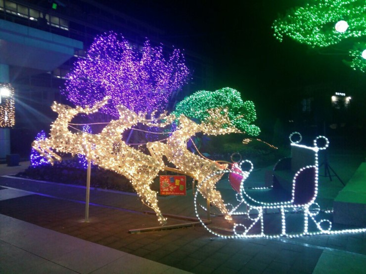 그 옆으로는 크리스마스의 심볼이죠, 눈썰매를 끄는 루돌프의 모습입니다. 꼭 진짜 루돌프가 있는 것 같아요. 뿔이 큰 루돌프 3마리가 올해 크리스마스에는 우리 아이들의 선물을 얼만큼 가져올지 궁금하네요!