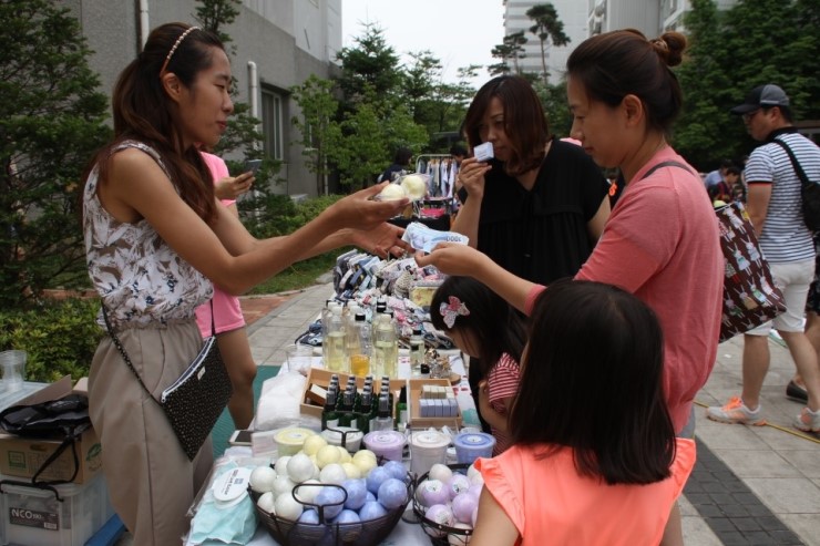 오산남부복지관은 지역주민과 함께 만드는 마을 만들기 사업의 일환으로 청호동 휴먼시아 아파트 내에서 나눔 장터 및 바자회를 열었다.