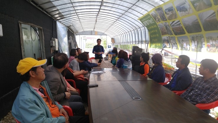 물향기농산 대표(여은남)님 마을기업과 표고버섯 친환경 농법에 대하여 설명중 (세교동 33번지 위치)