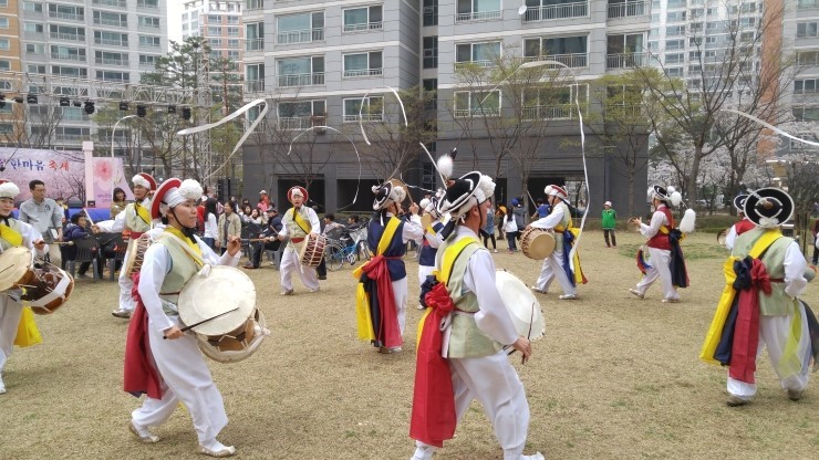 가지치기로 마무리 한 잘 심어진 매화나무 세마동 e편한세상 아파트 내 벗꽃축제는 그야말로 봄을 제대로 느낄 수 있었던 신명의 장이였어요 세마동 어울마당 풍물패의 장구소리와 솔솔~ 냄새 풍기는 먹거리 코너의 기름냄새는 동내 축제를 한껏 북돋아 주었지요~