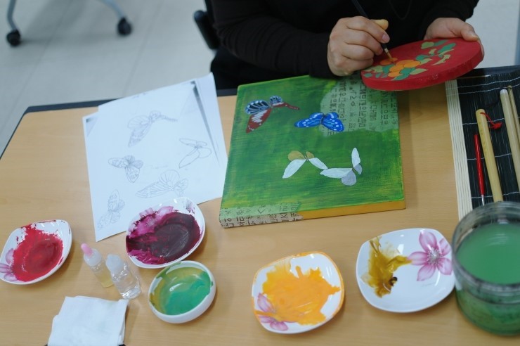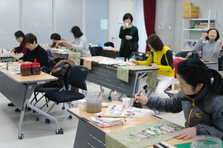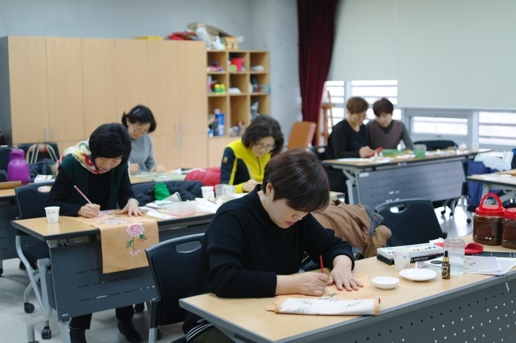 오산 중앙도서관 4층에서 이뤄진 민화 사랑회 수업은 생활 민화를 중심으로 개인 지도 수업이 이뤄졌다. 생활 속에서 응용할 수 있는 있는 것을 중심으로 한 사람, 한 사람 소재와 기법면에서 다르게 지도하였다. 선생님의 이러한 기법 지도는 '다양성 추구'를 위한 교육이라 하였다. 평범한 주부들로 구성된 수업은 전문가다운 모습으로 그들만의 섬세함과 집중력을 발휘하며 멋진 완성품을 만들어 가고 있었다. 그림 하나하나에 색감을 놓으며 입히는 그들의 손끝에서 또다른 장인의 모습을 보는듯 하였다. 손끝에서 이루어지는 예술을 감상하는 나에게 김혜경 선생님은 "민화는 우리 민족의 기원과 염원이 담긴 것으로 민족예술"이라고 강조하였다.