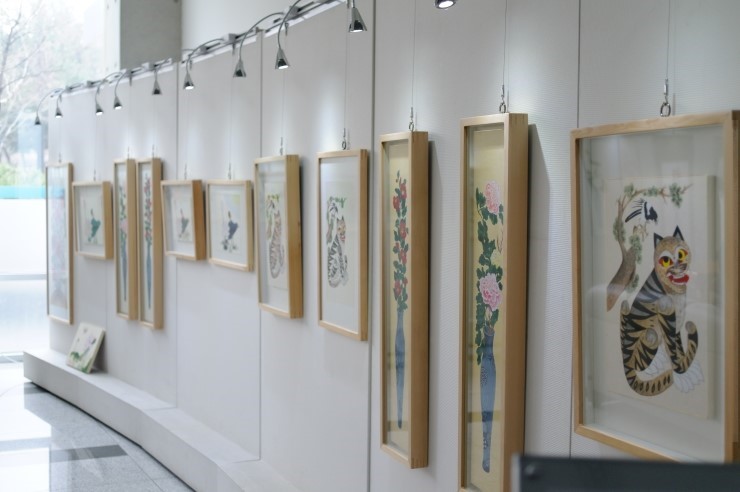 ▲ 오산 민화 사랑회 전시 중인 모습 오는 28일까지 오산 중앙도서관 로비에서 전시가 진행되니 민화의 깊은 매력에 멈춰서 감상하는 시간을 가져보는 것도 추천하고 싶다. |