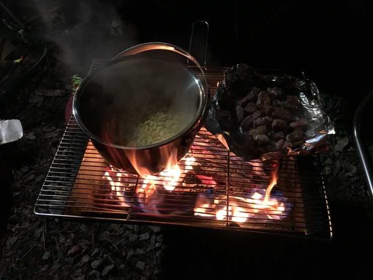 자연탐사를 모두 마치고 각자의 텐트로 흩어지니 땅거미가 지고 어둑어둑. 완전히 깜깜해 지기 전에 했던 '나만의 문패 만들기' 체험을 빠뜨릴 뻔 했네요. 우승 상금으로 장작 한다발이 걸려있는 '나만의 문패 만들기' 체험은 경쟁이 대단했어요. 드디어 두구두구두구 캠핑하면 빼놓을 수 없는 바베큐 시간~가족들 모두 모닥불을 피우고 바베큐 지글지글 구워 먹고 따뜻한 라면으로 몸을 녹이면서 즐거운 시간을 가졌어요.