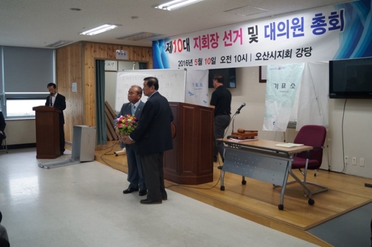 사) 대한노인회 오산시 지회는 5월 10일 10시 노인회 강당에서 관내 경로당 회장 112명이 참석한 가운데 제10대 지회장 선거를 실시했다. 이번 선거에는 5명의 지회장 후보자가 입후보 하였고 투표결과 기호4번 조재웅(세교6단지 76)경로당 회장이 선거권자 112명중 84표를 얻어 10대 지회장에 당선됐다.