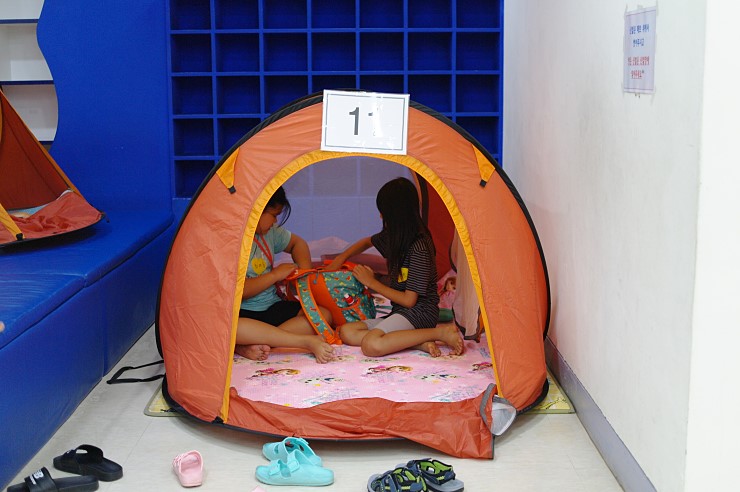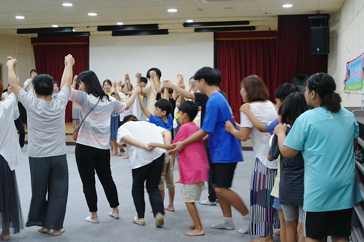 동화 『여우 비빔밥』 읽어주기, 주방에서 나는 소리 만들어보기, 입을 이용하여 소리 연주해보기, 요리사 퍼포먼스, 대동놀이(강강술래, 덕석몰이, 대문 놀이) 등 다채로운 놀이 활동으로 부모와 함께하는 독서캠프였다. ![]() 월 2회 운영하는 오산 꿈두레 도서관 1박 2일 독서캠프는 금요일 저녁 7시부터 토요일 아침 7시까지 도서관 다목적홀과 어린이 도서실에서 진행된다. 독서 교사와 어린이가 책과 독서를 테마로 놀이를 하면서 유익한 시간을 보낸다는 점에서 혁신 프로그램이라 해도 손색이 없다. 학생들은 책에 대한 딱딱한 이미지를 벗어나 역동적인 활동을 통해 책과 가까워진다. 캠프에 참여한 학생들은 책을 읽고 소통을 배운다. 서로가 소통의 법칙을 익히는 동안 화목한 가정을 만드는 계기가 된다. 부모와 함께 게임을 하고 책을 읽으며 추억 쌓기 장이 되기도 한다. ![]() 현재 오산시 꿈두레 도서관은 시민들과 학생들에게 큰 호응을 얻으며 관내 초등학생을 대상으로 1박 2일 독서캠프를 운영 중에 있다. 금요일마다 격주로 운영되는 독서캠프는 2014년 4 월 개관 이래 현재까지 총 76회가 넘게 운영하면서 1870여 명이 참여했다. 개관 첫해에는 '친구와 함께' '아빠와 함께' 등 가족 친화 프로그램을 시작했다. 연극, 무용 등 전문 예술들을 초대하여 '예술 체험 프로그램'을 진행하기도 하고, 독서 토론 선생님들과 함께 독서 토론 능력이 자연스럽게 습득되도록 '토론 중심' 캠프를 운영한다. ![]() ![]() ▶ 부모와 자녀가 풍선으로 하나가 되어 즐거운 게임을 한다. ![]() ▶ 대동놀이(강강술래, 덕석몰이, 대문 놀이)를 하는 모습이다. ![]() ▶ 놀이 활동을 마친 후 부모와 자녀가 서로의 소감을 나누는 모습이다. 저녁시간 책과 함께하는 활동을 마무리하고 학생들은 어린이 도서관에 준비된 텐트로 이동하여 자유로운 시간을 가져 보았다. 책을 읽기도 하고, 서로 가져온 짐을 풀어가며 담소를 나누는 시간이다. ![]() ![]() 오산 꿈두레 도서관에서 진행된 1박 2일 독서캠프라는 이색적인 체험은 학생들에게 특별한 추억을 선물했다. 집과 학교에서 책상에 앉아 읽는 책이 아닌, 놀이와 즐거운 활동을 하면서 좀 더 책과 가까워지는 시간이 되었다. 더불어 도서관은 친근한 친구처럼 언제든 올 수 있는 장소가 되었다. ![]() ▶ 나만의 공간에서 쉼을 가지며 취침하기 전에 책을 읽는 친구이다. ![]() |