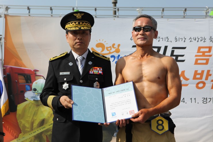 이날 행사 중에서 가장 특별했던 시간은 경기도 몸짱 소방관 선발대회이다. 몸짱 소방관 선발대회에서 인기상을 수상한 오산시 소방서 김두진 소방관을 만나보았다. 최고 연장자로서의 겉모습과는 달리 젊은 소방관 못지 않은 탄탄한 근육과 몸매로 보는 이로 하여금 탄성을 자아내게 했던 김두진 소방관이다. 평소 자기관리를 어떻게 하냐는 질문에 자상한 웃음을 선보이며 항상 소방 진압요원으로 가장 기초가 되는 것이 몸 관리라고 하였다. 천직으로 생각하는 일에 기본 체력과 근력이 준비되지 않으면 현장에 투입되었을 때 시민들을 보호하고 구조하는 데 어려움이 따른다고 하였다.