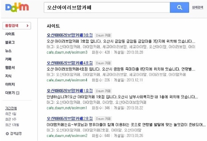 그 "카페"가 검색이 안되는거에요. 확인해보니, 다음에 카페가 있네요... ^^;;