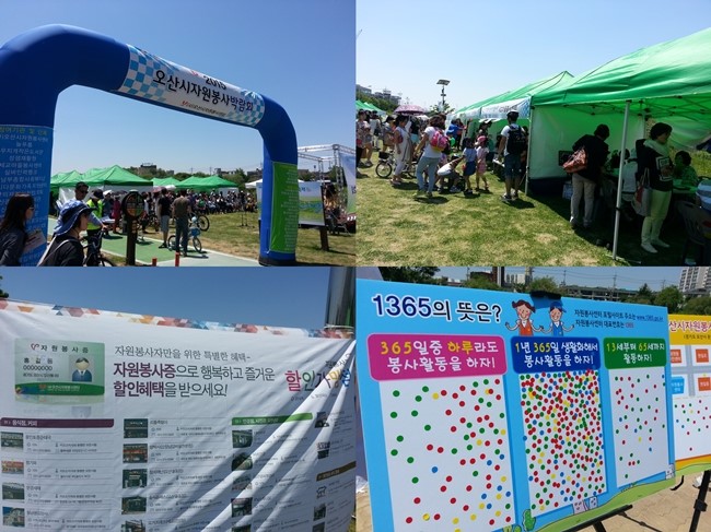 묘기를 뒤로하고 함께 열리고 있는 자원봉사 박람회 장소로 이동 오산시에서 활동하고 있는 다양한 자원봉사단체에서 참여해주었답니다.