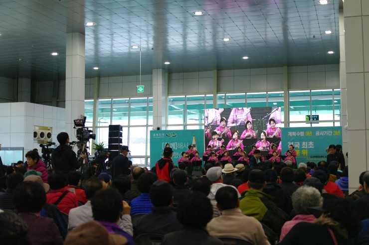 테스틀 글 2 첨부 내빈 축사를 마친 후 테이프 커팅 시간이다. 많은 시민들의 축하 박수와 함께 11월 2일부터 순차적 운영될 환승센터 개통식이었다. |