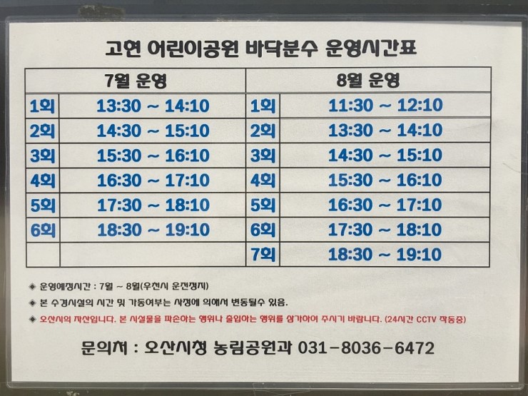 타는 듯한 불볕더위가 이어지는 요즈음 낮의 더위를 피해 해 질 무렵 사람들이 찾는 곳이 있습니다. 세교 13단지 옆 음악 분수대인데요. 이곳에서는 오후 8시가 되면 조명과 함께 음악분수가 시작됩니다. 클래식, 영화 OST에 맞춰 시원한 물줄기가 춤을 추듯 뿜어져 나오고, 눈과 귀가 행복해지는 이 시간은 40분 동안 이어집니다. ![]() ![]() 가만히 앉아 들려오는 음악 소리와 물소리에 귀를 기울이면 평온함이 느껴집니다. ![]() ▲ 무더운 날들 속 잠시 쉬어가는 장소가 되는 분수대 앞 ![]() ▲ 시민들의 ‘소확행’ 역할을 하는 음악분수 음악분수 외에도 도심공원에서는 바닥분수가 운영되고 있는데요. 시원한 물놀이가 가능한 바닥분수는 맑음터공원, 고현어린이공원, 청호제3어린이공원, 양산근린공원, 오산시청광장에서 만날 수 있습니다. ![]() ▲ 물놀이장이 함께 있어 이용자가 많은 맑음터공원 분수 ![]() ▲ 고현어린이공원 분수광장 ![]() ▲ 바닥분수 운영 시간표 ![]() ▲ 청호제3어린이공원 (오후 1시 30분부터 오후 7시 10까지 40분씩 운영) ![]() ▲ 양산근린공원 바닥분수 ![]() ▲ 오산시청광장 분수 도심의 무더위를 식히기 위해 이렇게 오산 곳곳에서 바닥분수가 운영되고 있습니다. 물놀이하는 시민들의 안전을 위해 매주 월요일에는 시설점검과 저수조 청소를 진행하고 전문 기관을 통해 수질검사를 시행한다고 하니 무더운 이 여름, 시원한 분수 물줄기 보며 여유로운 시간 가져보세요~ ![]() |
