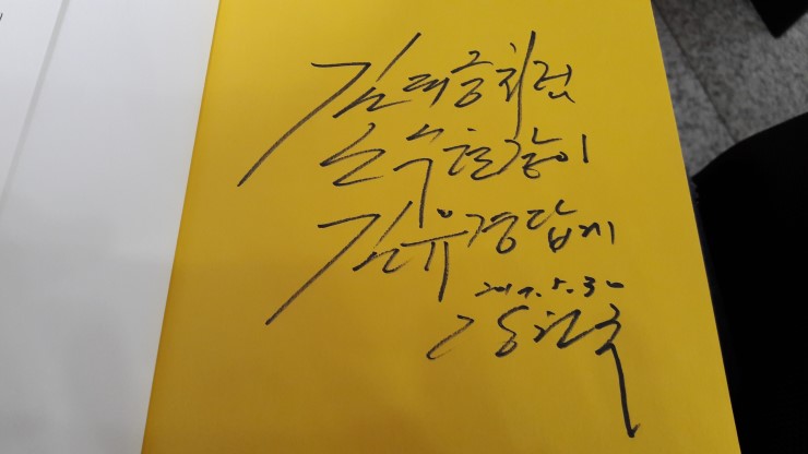 싸인보다 글이 더 감동이었다. 당장이라도 나다운 글을 쓸 수 있다는 자신감이 불끈 솟아오른다.