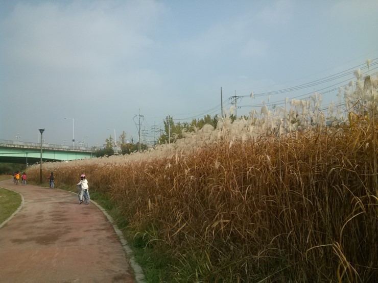중간쯤 지나니 자전거를 멈출수밖에 없다. 시들지 않은 척 내색 않고, 가을바람에 제 몸을 맡기어 흔들리는 억새를 누군가가 표현했던데, 이런 억새를 보니 도저히 그냥 지나칠 수가 없다.
