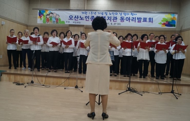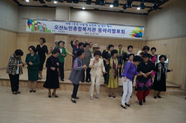 오산노인종합복지관(관장 박철민 ·오산시 수청로 192)은 27일 오후 개관 1주년 기념 및 노인의 날 맞이 ‘동아리발표회’를 400여 명의 회원이 참석한 가운데 4층 강당에서 진행했다.