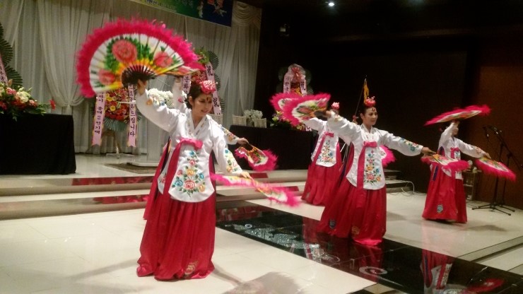 9명으로 이뤄진 오산 장로교회 ‘풍물선교단’은 사물놀이로 오산 국악협회의 앞길을 축복해 줬고, 오산 국악협회의 박정희 님 외 5명은 나비가 꽃을 찾아 날아가듯 화려한 춤사위로 박수갈채를 받았어요.