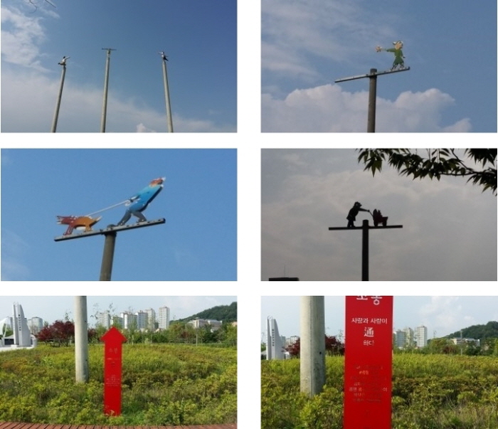 입구에 들어 서면 "소통"을 알려주는 빩간 표지판이 눈길을 끈다. 이 소통은 사람과 사람이 통하여야 한다는 것이면서 위로 향한 화살표는 전신주와 사람과의 만남을 또 다른 모습으로 표현하여 사라져 가는 전신주의 정감가는 모습을 보여 주고 있다.