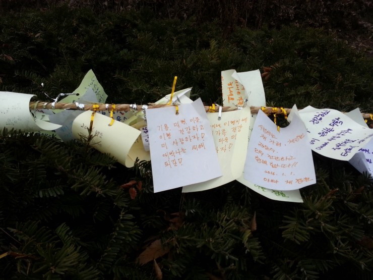 어둑어둑한 이른 새벽부터 해맞이 행사에 모인 오산시민들로 북적거렸습니다. 많은 사람들이 가족의 건강과 복을 비는 소원의 문구를 적어 끈에 달았습니다. 우리 가족의 소망도 빼곡히 적어 함께 걸어보았습니다.