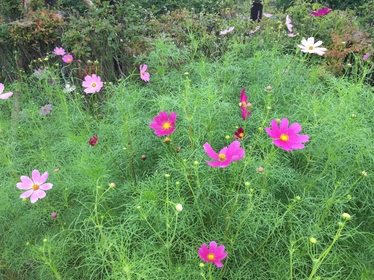 ▲ 캠핑장 잔디밭에 활짝 핀 코스모스