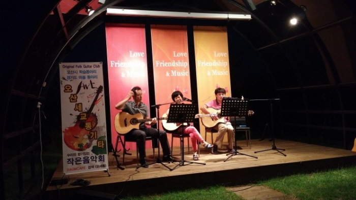경기도 마을동아리와 오산시 학습동아리인 우리만의 향기로 오산세교통기타 정기모임이 7월 29일(화) 외삼미동 야외 바베큐장에서 있었습니다.