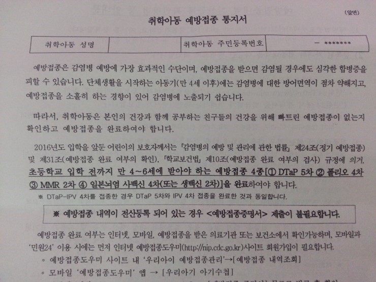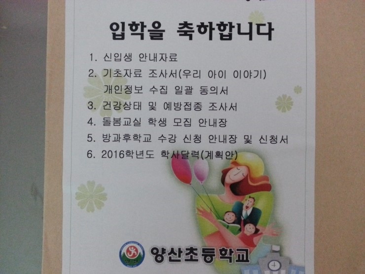 지난 1월 5일 오산의 양산초등학교에서 입학생 예비소집일이 있었습니다. 예비소집일은 지역 동사무소에서 나줘 준 취학통지서를 들고 배정받은 학교에 제출하여 예비 학생임을 확인하고 학교에 갈 준비를 하도록 안내받는 날입니다.