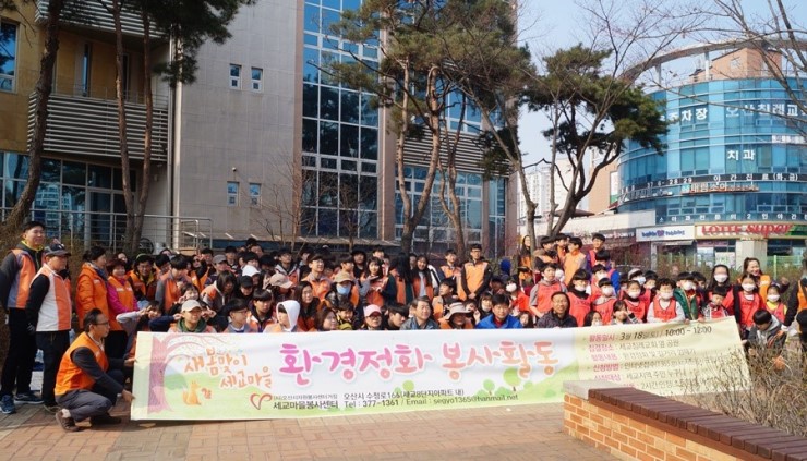 오산시 자원봉사센터 [이사장 유관진] 산하 세교마을 봉사센터[대표 이은경 ; 세교 8단지]에서는 이달 18일 오전 새봄맞이 세교마을 환경정화 봉사활동을 했다. 이번 행사의 특징은 깨끗한 세교 만들기 봄맞이 대청소에 목적을 두고
