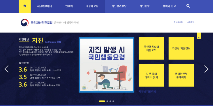 ▲ 이미지 출처 : 재난안전포털 홈페이지 재난안전포털( https://www.safekorea.go.kr/idsiSFK/index_web.jsp )을 즐겨찾기나 북마크해서 저장해두세요. 우리 동네 옥외대피소 검색은 아래에서 가능합니다. 검색해서 멀리있는 가족, 친지들에게 전달해주세요.