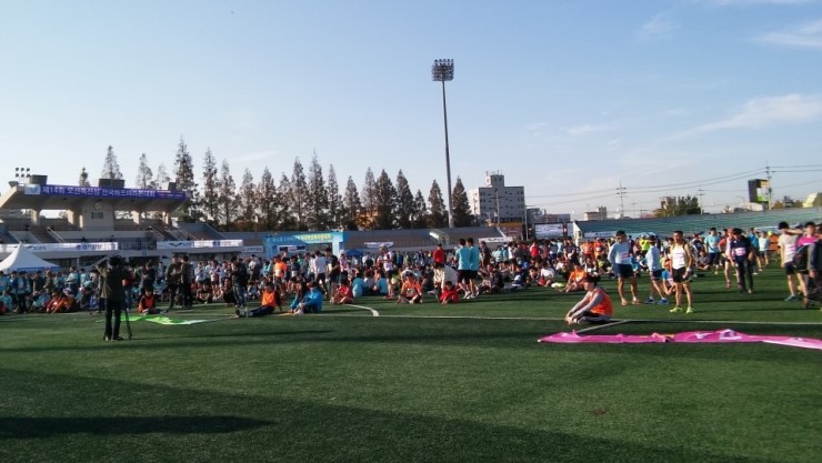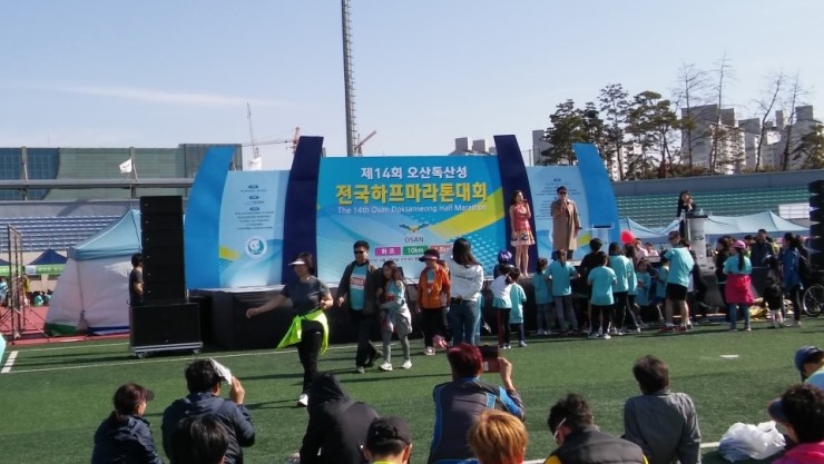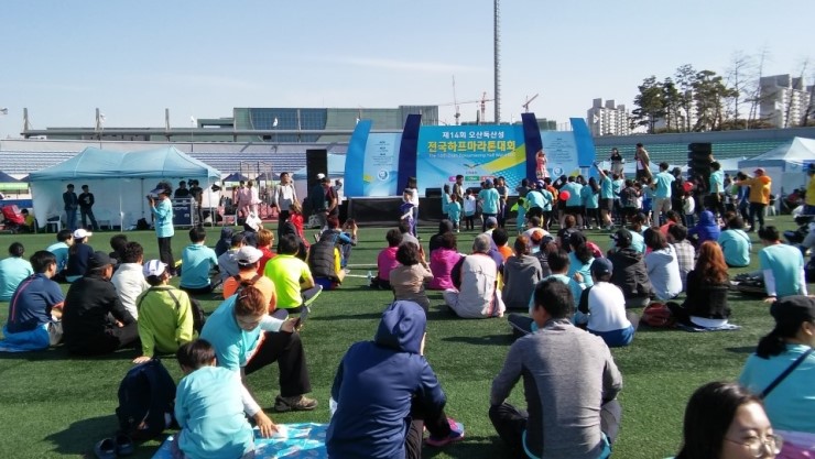 제14회 오산 독산성 전국하프마라톤대회가 오산종합운동장에서 10월 22일 열렸다. 풍경사진에 나올 것 같은 맑고 쾌청한 날씨였다. 전문 마라토너의 복장을 갖춘 마라톤 동호인들과 어린이들을 동반한 가족과 시민들, 자원봉사자들이 운동장을 가득 메웠다. 참가번호가 일만 번이 넘어 갔으니 많은 인원이다.