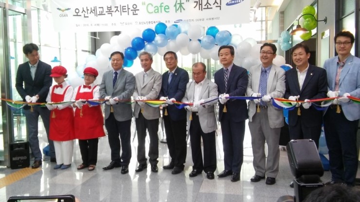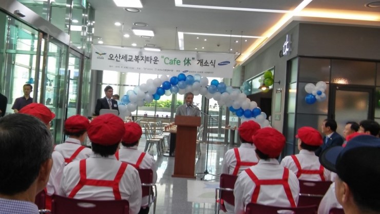 세교 종합 복지관(관장 박철민) 1층 카페 휴에서 2016. 8. 4(목) 11:00 개소식이 진행되었다. 이상모 부관장의 사회로 곽상욱 오산시장과 손정환 오산시의회의장, 여명구 삼성전자 단장의 축사와 테이프 컷팅 및 기념촬영, 참석자와 함께 다과 및 시음회로 순서가 진행되었다.