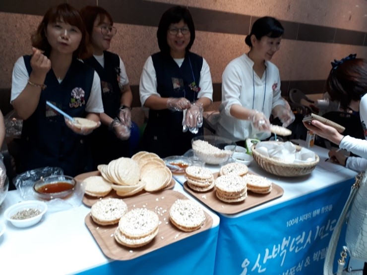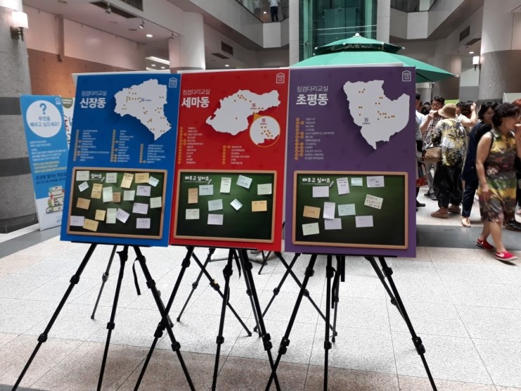 ▲ 시청 1층 로비에서 진행된 홍보박람회 모습 시청 1층 로비에서는 자원봉사하시는 선생님들의 부스별 특별 나눔 행사가 있었습니다. 맛있는 커피도 나눠주고 예쁜 화분도 만들어 가져갈 수 있도록 준비해 주었으며 구수한 뻥튀기도 만들어 나눠줬답니다. 관내 어르신들도 많이 오셔서 살맛 나는 제2의 인생을 찾아가는 느낌표학교 수강신청을 하는 모습도 볼 수 있었습니다.