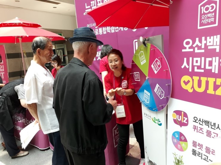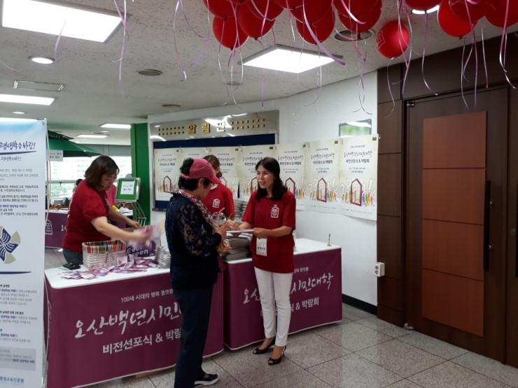 7월 6일 오후 2시 오산시청 대회의실에서 오산백년시민대학 비전선포식이 있었습니다. 바람개비의 작은 바람이 곳곳으로 퍼져 전해지듯이 평생학습 바람이 사방에 전해져 오산시민이 평생학습 활성화를 통해 행복한 삶을 누리는 데 의미를 두었습니다.