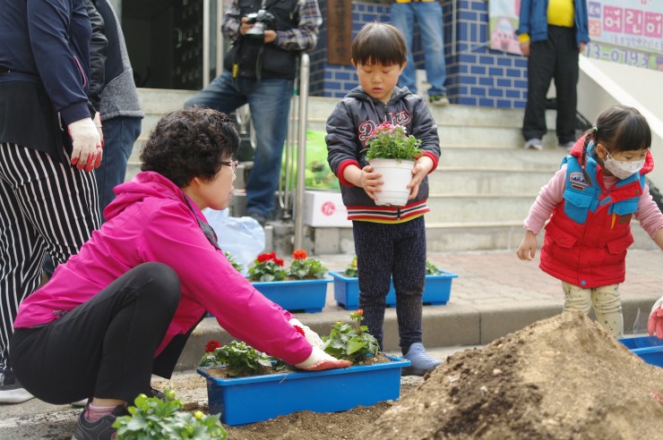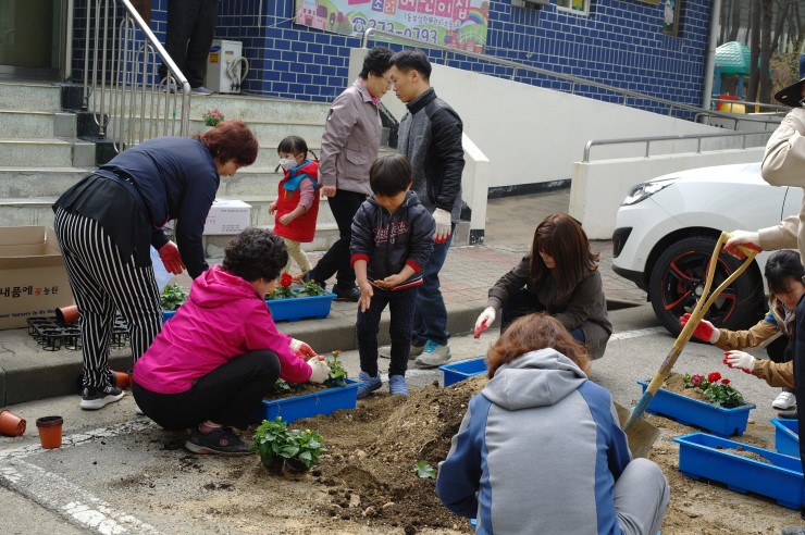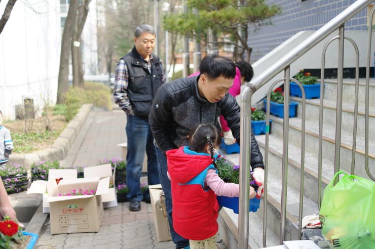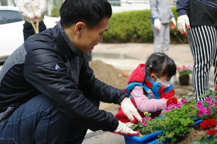 4월 5일 식목일을 맞아 오산 원동 동부삼환 아파트에서는자녀와 함께하는 꽃심기를 하였다.