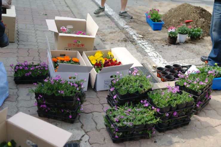 어린 자녀를 데리고 꽃심기에 집중하는 아빠, 할머니와 함께 꽃심기에 여념이 없는 고사리 같은 아이들의 손이 야무지게 보였다. 이른 아침부터 분주하게 움직이는 손놀림은 각 가정에 예쁜 꽃송이로 만든기쁨을 만들고 있는 듯하였다.