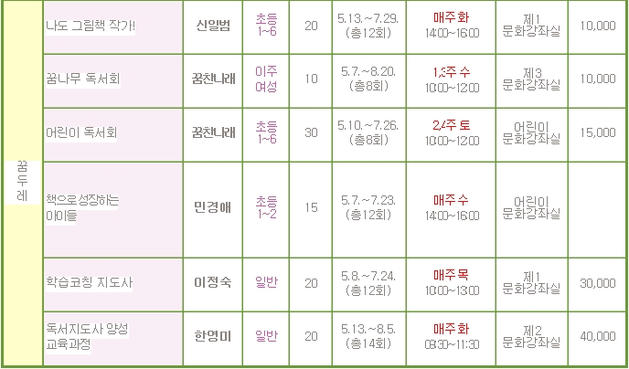 수 강 료 : 무료 (강좌에 따라 교재비 및 재료비는 수강생 부담)