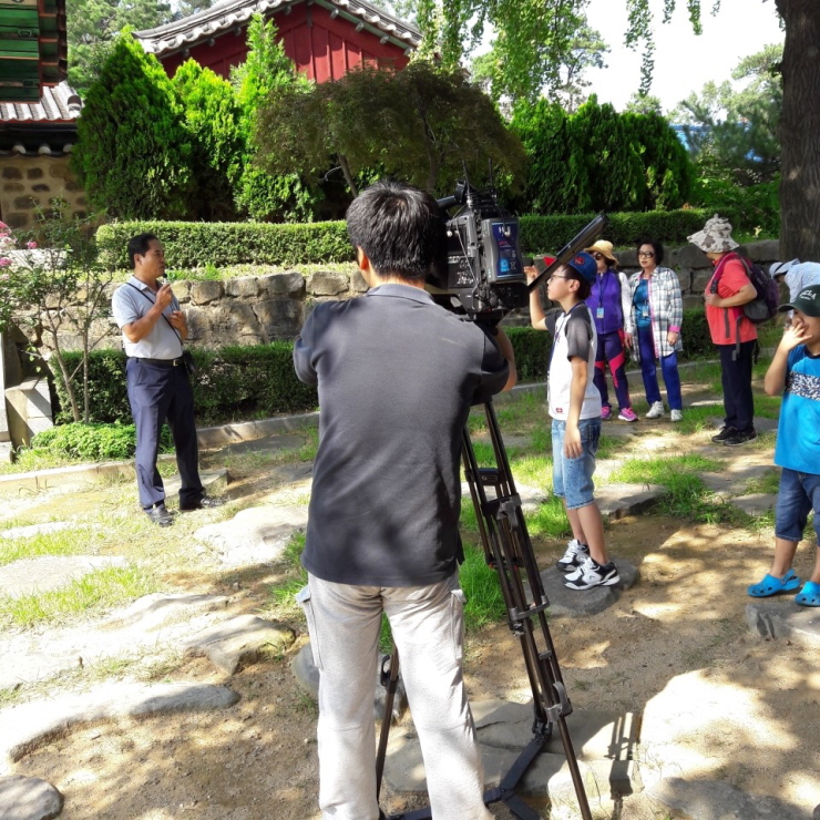 ▲ 해설사의 설명을 듣고 있다. 오산에 대한 자긍심을 갖게 해주는 궐리사에서 성묘, 공자문화전시관을 관람한 후에는 새로 지어진 궐리사 학당에서 다도 시연 및 체험활동을 할 수 있다.