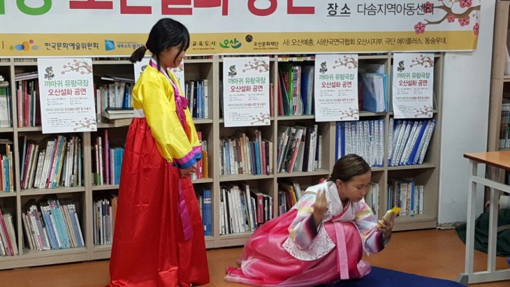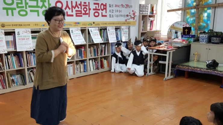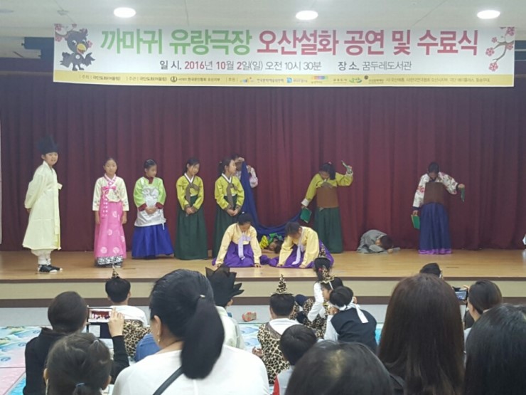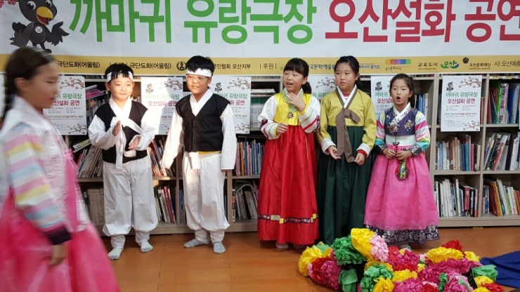오산시 문화재단에서 진행하고 있는 우리동네 프로젝트의 하나인데요, 극단 됴화(단장 이화정)가 까마귀 유랑극장 단원을 모집해서 우리 오산의 설화인 ‘운암뜰 전설’, ‘악기소리를 좋아하는 높은재 도깨비 이야기’, ‘꽃가마 약수터 이야기’를 연극무대에 올렸어요.