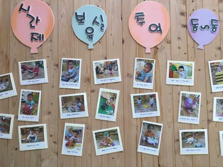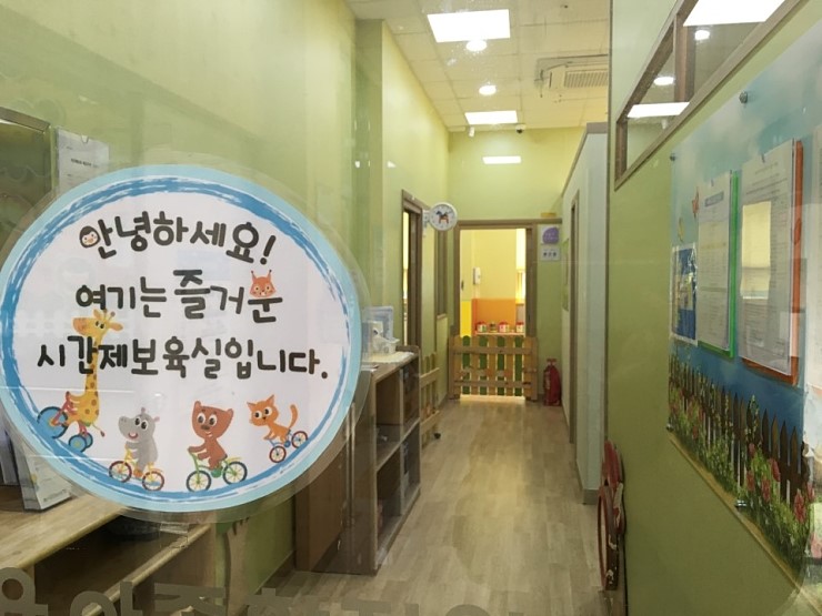 시간제 보육실에 다녀간 아이들의 사진도 한쪽에 걸려 있는데 급한 상황 등에서 아이를 안전하게 맡길 수 있는 곳이 있다니 다행인듯합니다.