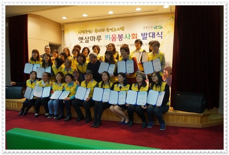 곽상욱 시장은 인사말을 통해 지난 2007년 개관하여 8년이 경과된 햇살마루 도서관을 제2의 발전을 위해 지역주민에게 돌려 주어 혁신 교육의 터전을 마련 하고, 책만 읽는 도서관을 넘어서 어린이가 꿈꿀수 있는 터전을 마련하기 위해 자원봉사자 여러분들이 사랑과 나눔 정신으로 지역어린이들과 배우고자 하는 모든시민들의 꿈을 키우는 공간으로 만들어 달라고 당부 했다.