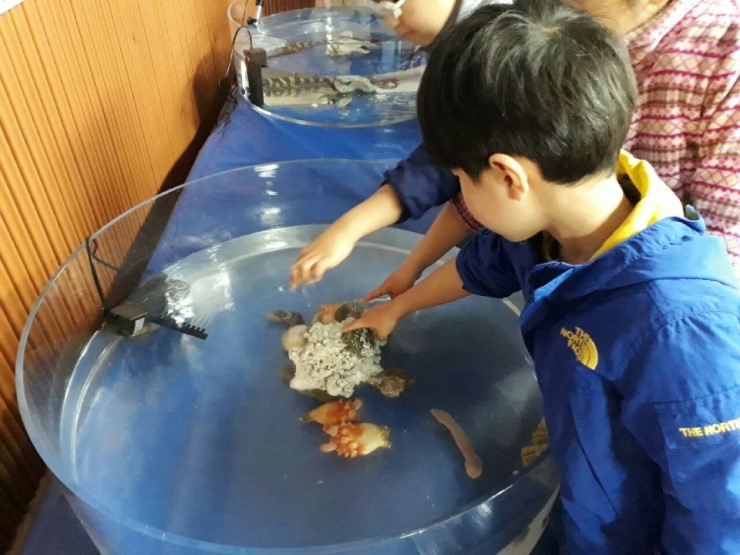 먼저 바다와 해양생물의 귀중함에 대해 알아본 후 해양생물을 체험하고 직접 만지고 느껴보았습니다. 여러 종류의 바다 생물 중에서도 상어 체험이 제일 인기가 많았으며 상어 알을 집에서 직접 키워보겠다는 아이도 있었답니다.