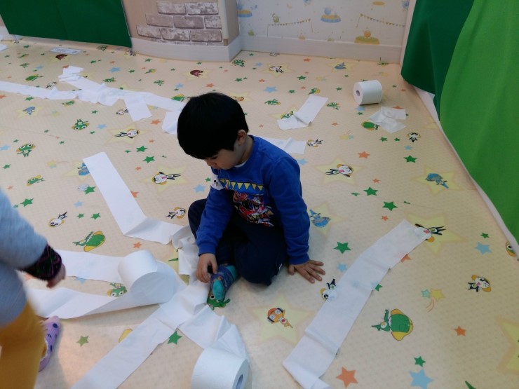 ▲ 휴지놀이- 휴지로 길 만들기