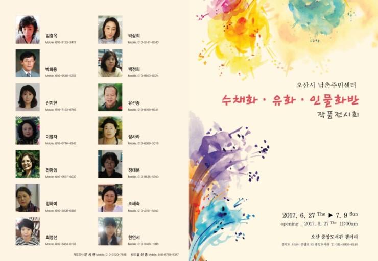 남촌동(동장 황상섭) 문화강좌 수채화, 유화, 인물화반은 지난 꿈두레도서관 전시에 이어 6월 27일부터 중앙도서관에서 작품 전시를 한다.